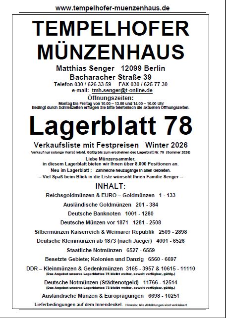 - 174. Auktion vom 16. bis 17. April 2026 (Münzen, Medaillen, Papiergeld)