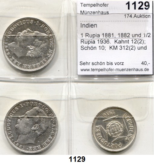 18:02 1185 42,00 €![]() 20 Reis 1881, 1882, 1883, 1886; 5 Reis 1910; 500 Reis 1908; 10 Escudos 1933 und 1934. LOT. 8 Stück. Katalogseite