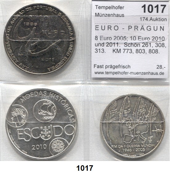 15:37 1017 30,00 €![]() 8 Euro 2005; 10 Euro 2010 und 2011. Schön 261, 308, 313. KM 773, 803, 808. LOT. 3 Stück. Katalogseite
