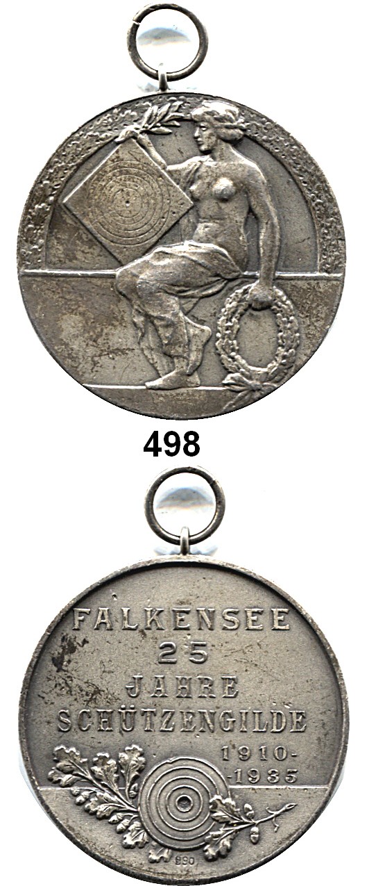M E D A I L L E N,Schützen Falkensee Silbermedaille mit Öse 1935.  25 Jahre Schützengilde 1910 - 1925.  Punze im Feld :