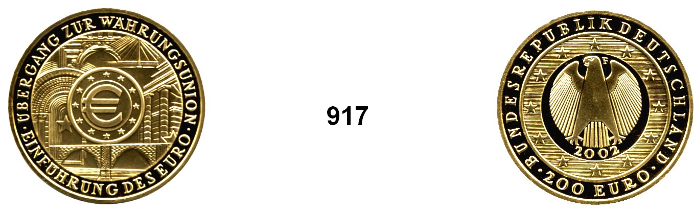 200 EURO 2002 F. Übergang zur Währungsunion – Einführung des Euro. GOLD Im Originaletui.