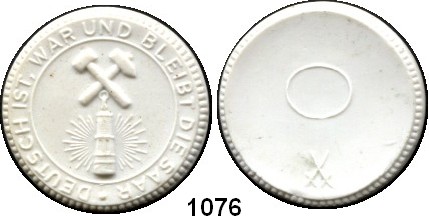 PORZELLAN  SPENDEN - MEDAILLEN,Staatliche Porzellan-Manufaktur MEISSEN Meissen o.J. (1933) weiß.  Saar - Erinnerung.