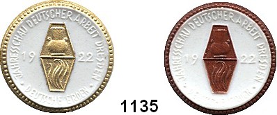 1922 braun; braun, Rand und Sechseck gold; weiß; weiß, Rand und Sechseck gold und weiß, Rand und Sechseck rot. JDA – Deutsche Erden. Scheuch 1282.a, d, n, q, v. LOT 5 Stück.