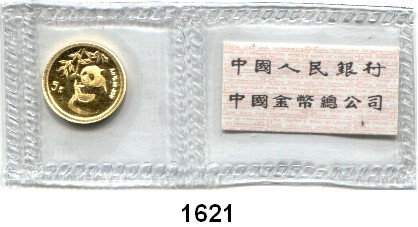 5 Yuan 1995. (1/20 UNZE 1,55 g fein). Hüftbild eines Pandas mit Bambuszweig. Verschweißt. Schön 781. KM 715. Fb. B 8. GOLD