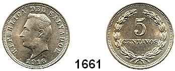 AUSLÄNDISCHE MÜNZEN,El Salvador  5 Centavos 1916.  Schön 14.  KM 129.