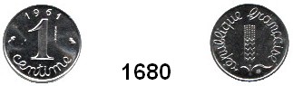 1680. Frankreich 5. Republik seit 1958 1 Centime 1961. ESSAI. KM E 103.. Index: Probe (Essai) Ausländische Münzen Katalogseite Auktion: 163 Losnummer: 1680 Erhaltung: Stempelglanz Schätzpreis: 40,00 € Zuschlag: 65 €
