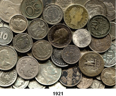 LOT von 81 ausländischen Silberkleinmünzen. Brutto 270 Gramm.