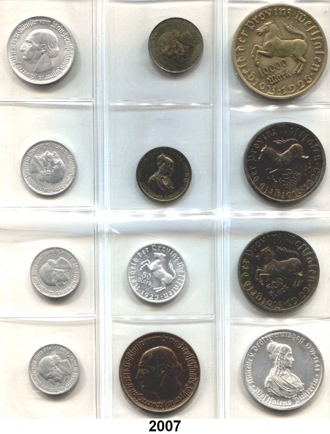 50 Pfennig 1921(2); 1 Mark 1921; 5 Mark 1921(Aluminium); 10 Mark 1921; 50 Mark 1923; 100 Mark 1922, 1923(2); 500 Mark 1922, 1923 und 10.000 Mark 1923. LOT 12 Stück.
