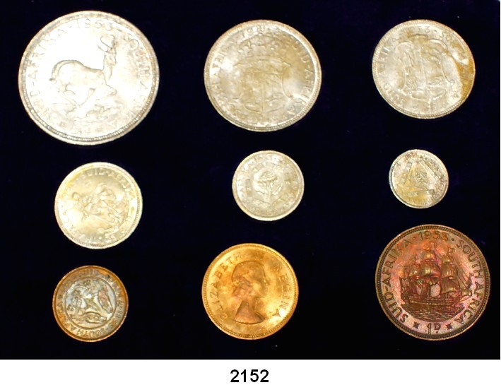 AUSLÄNDISCHE MÜNZEN,Südafrika  Kurssatz 1953.  SATZ. 9 Stück.  Im Orinaletui der