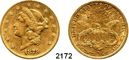 AUSLÄNDISCHE MÜNZEN,U S A  20 Dollars 1879 S (30,09g fein).  Kahnt/Schön 52.  KM 74.3  Fb. 178.  GOLD.