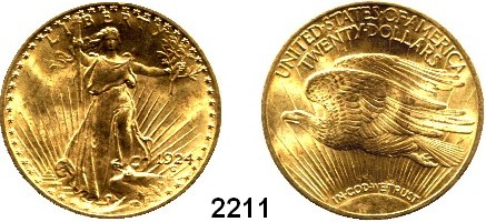 AUSLÄNDISCHE MÜNZEN,U S A  20 Dollars 1924.  (30,09g fein).  Schön 143.  KM 131  Fb. 185.  GOLD.