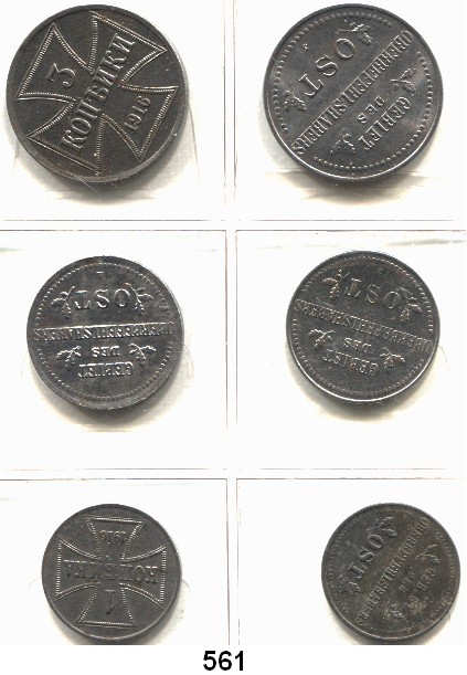 1 Kopeke 1916 A, J; 2 Kopeken 1916 A, J; 3 Kopeken 1916 A und J. LOT. 6 Stück.