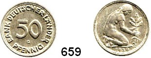 0659. B U N D E S R E P U B L I K 50 Pfennig 1950 G. Bank Deutscher Länder. Bundesrepublik Katalogseite Auktion: 170 Losnummer: 0659 Erhaltung: Sehr schön Literaturnummer: 379 Schätzpreis: 100,00 € Zuschlag: 105,00 €