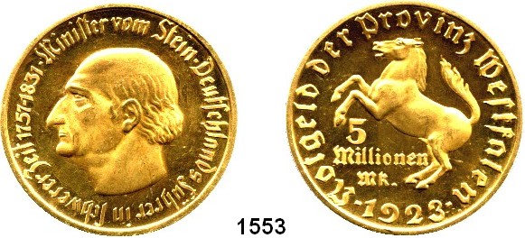 Notmünzen; Marken und Zeichen,0 Westfalen 5 Millionen Mark 1923.  Wertangabe in drei Zeilen.  Jaeger N 21.  Menzel 26666.27.