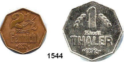 Notmünzen; Marken und Zeichen,0 Berlin Berliner Kindl (Brauerei).  1 Kindl Fennich; 2 1/2 Fennich; 1 Sechser; 1 Groschen;  5 Groschen; 10 Groschen und 1 Kindl Thaler