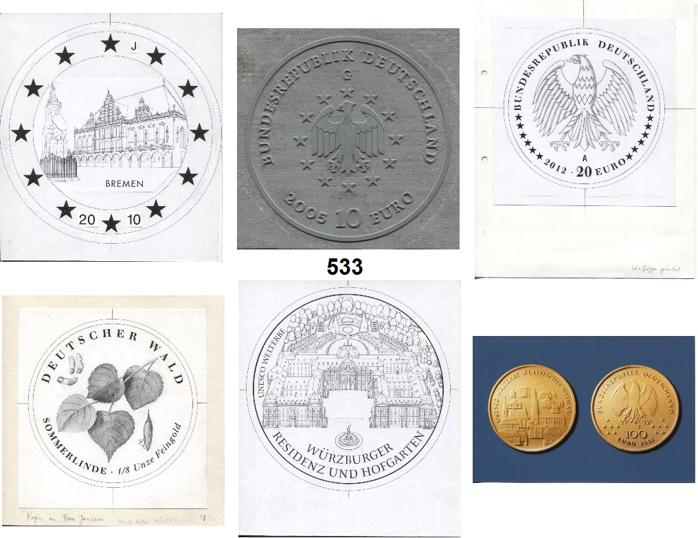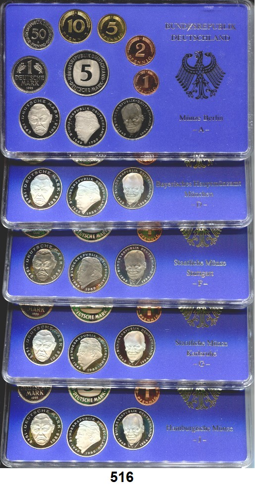 1 Pfennig 1948 F, 1949 D, F, G, J; Euro-Starterkit (10,23 €); Buch, „Das D-Mark Gedenkbuch“ 1948-2001. 64 Textseiten und ein Blatt mit bundesdeutschen Kleinmünzen vom Pfennig bis 5er. Oberbefehlshaber Ost, 1, 2 Kopeken 1916 A; Gpl. Kgr. Polen, 5 Fenigow 1917; 4 alte Kleinmünzen in minderer Qualität (darunter Straßburg, 2 Kreuzer o.J.). Beigegeben 4 alte Ledergeldbörsen jeweils mit Stahlbügel. LOT. 18 Stück.