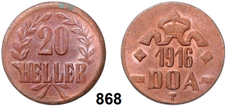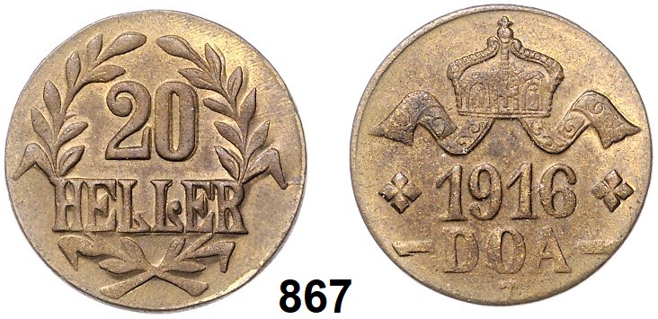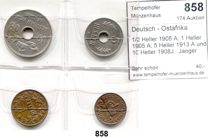 Ober-Ost, 1 Kopeke 1916 A; 2 Kopeken 1916 J; 3 Kopeken 1916 A; Geplantes Königreich Polen, 1 Fenig 1918; 5 Fenigow 1917; 10 Fenigow 1917; Beigegeben Saarland, 20 Franken 1954; Braunschweig, 10 Pfennig 1920 und Hamburg, 1/2 Million Mark 1923. LOT. 9 Stück.