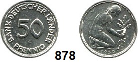 0878. B U N D E S R E P U B L I K 50 Pfennig 1950 G. Bank Deutscher Länder. Jaeger 379 Bundesrepublik Katalogseite Auktion: 174 Losnummer: 0878 Erhaltung: Sehr schön Schätzpreis: 100,00 €
