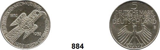 0884. B U N D E S R E P U B L I K 5 Mark 1952 D. Jaeger 388. Germanisches Museum. Bundesrepublik Katalogseite Auktion: 174 Losnummer: 0884 Erhaltung: Vorzüglich + Schätzpreis: 270,00 €