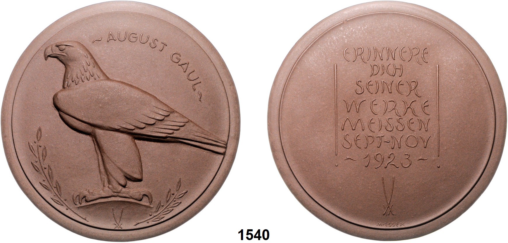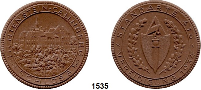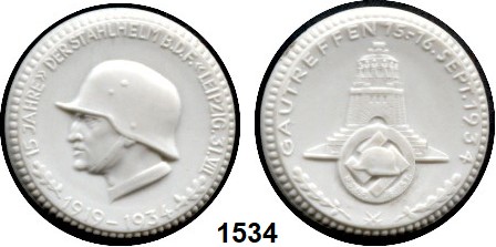 Nürnberg, Braune Porzellanmedaille mit Golddekor (Rand und Spiegel der Vorderseite gold) 1934. Deutsche Kampfspiele. 50 mm. Im Originaletui „Gegeben von der Stadt Nürnberg“.