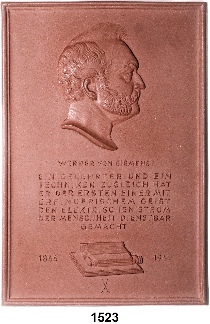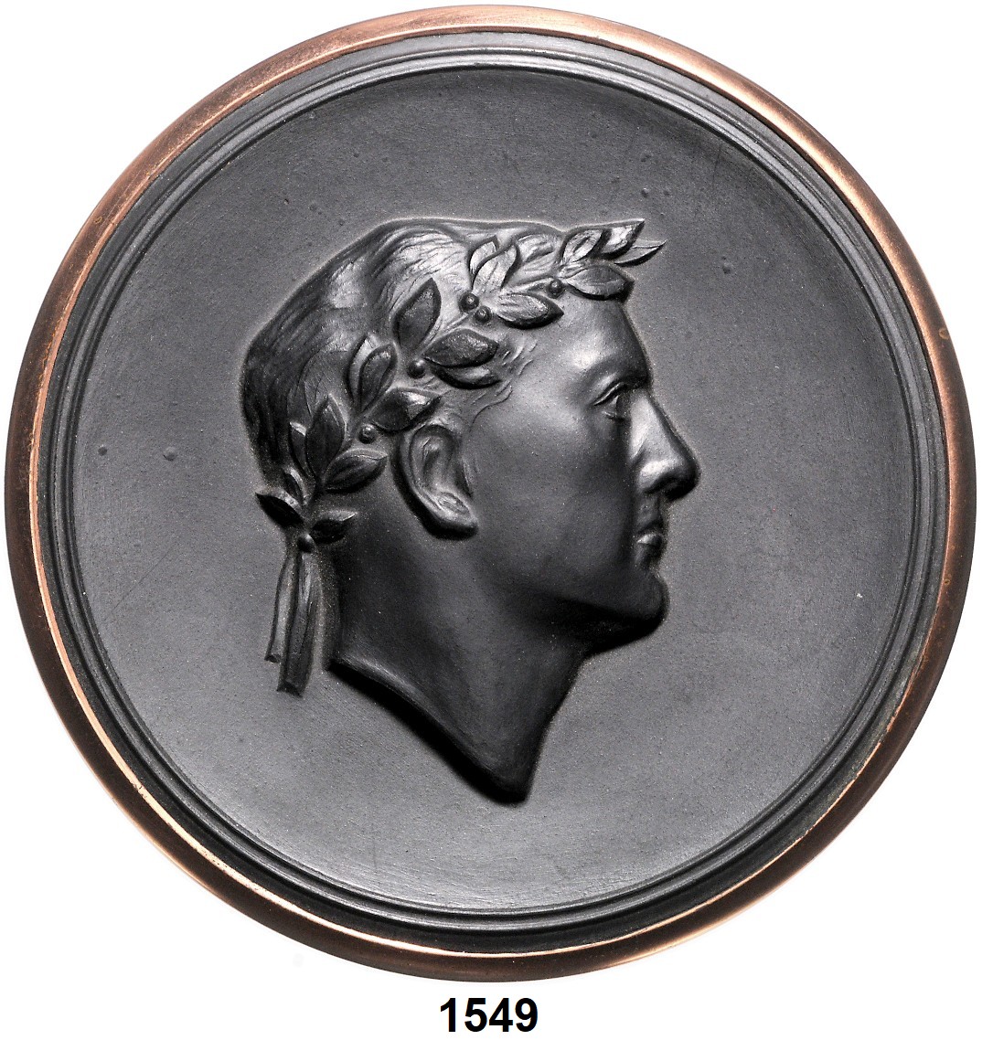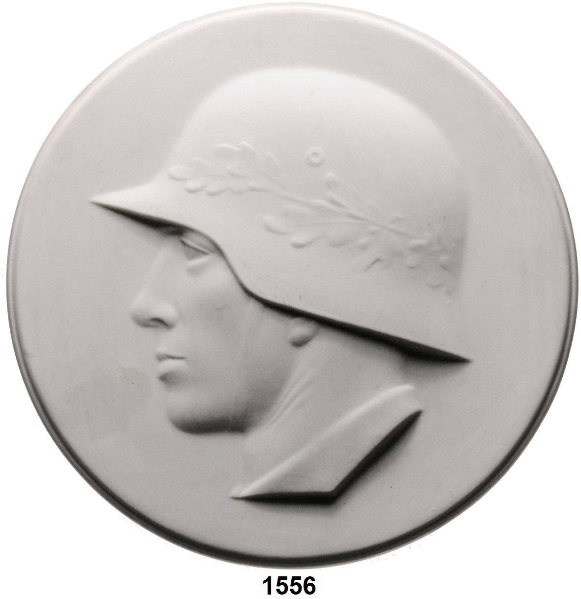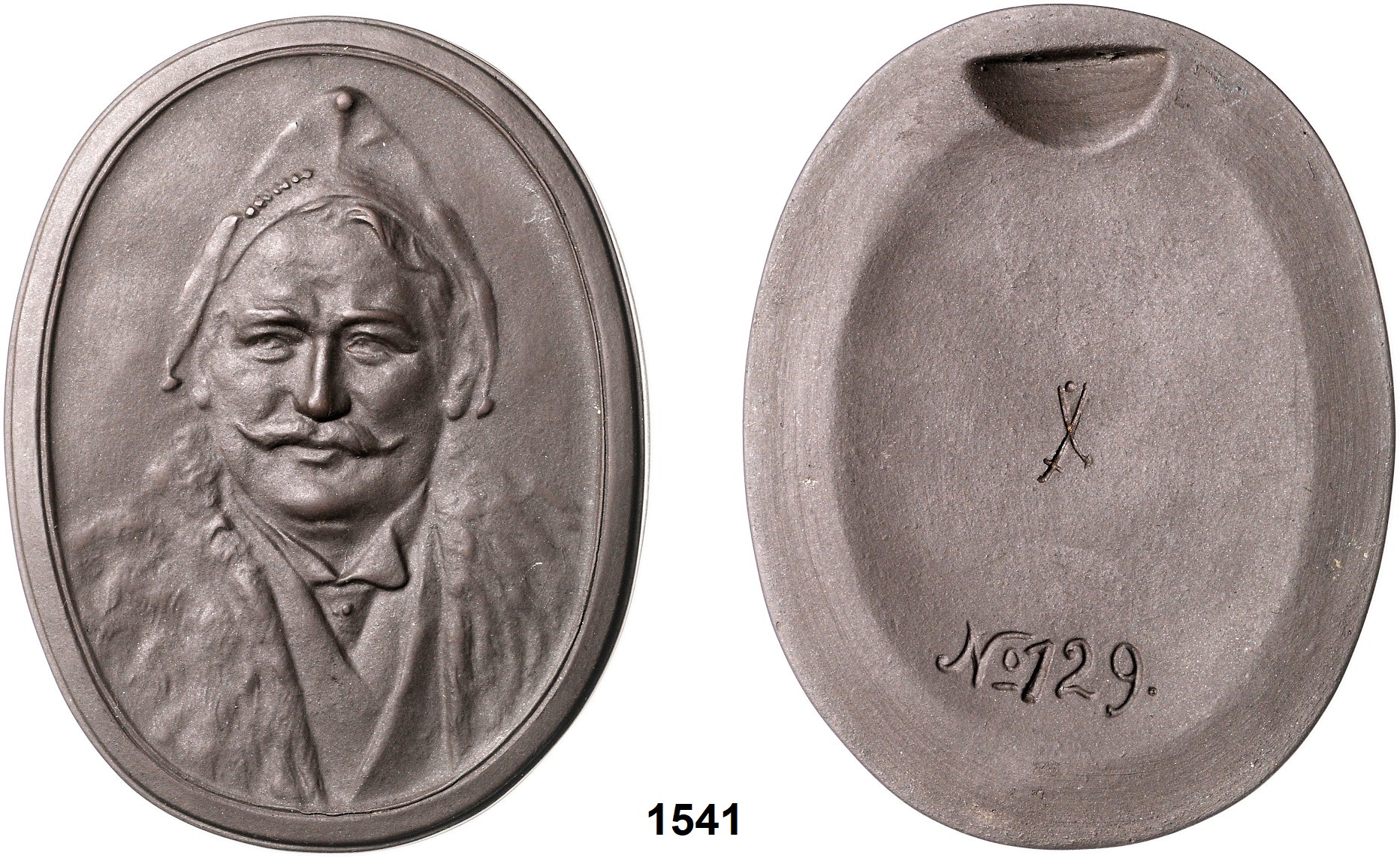 Einseitige hellbraune Plakette o.J. (nach Prof. Bezener). Kopf Kaiser Wilhelm II. nach rechts. 21,2 cm. Im Originaletui (Kaiserkrone und W II in Golddruck auf dem Deckel).