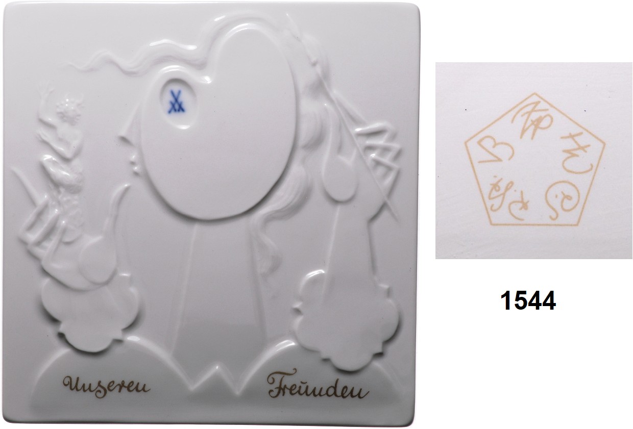 Weiße Medaille 1963. 200 Jahrfeier der Manufaktur. Manufakturzeichen und Arbeitsabläufe. / 12 Textzeilen (Auszug aus dem Vertrag mit Friedrich d. Großen. 95 mm.