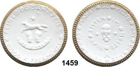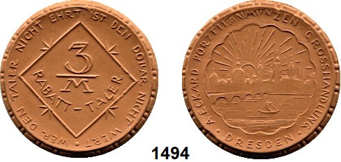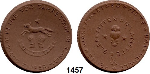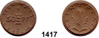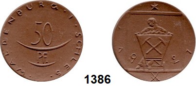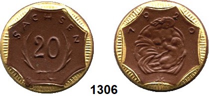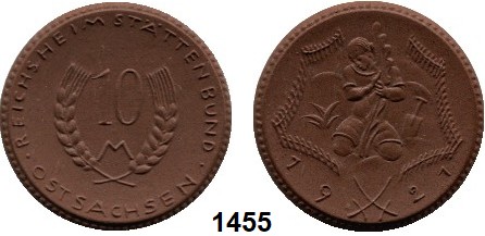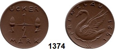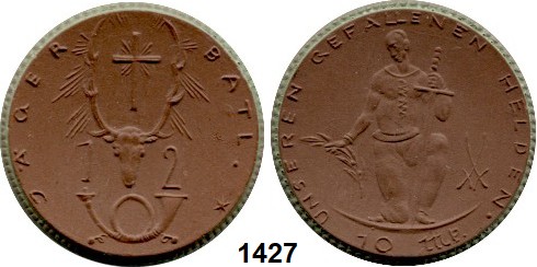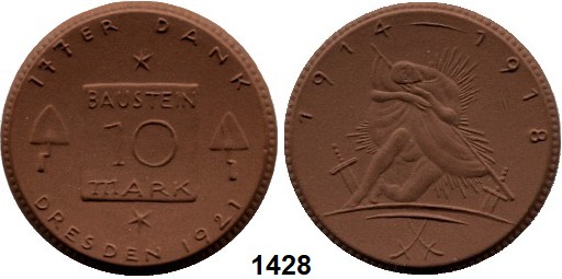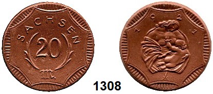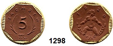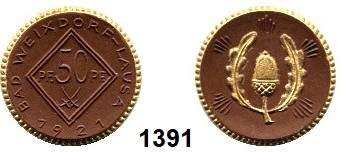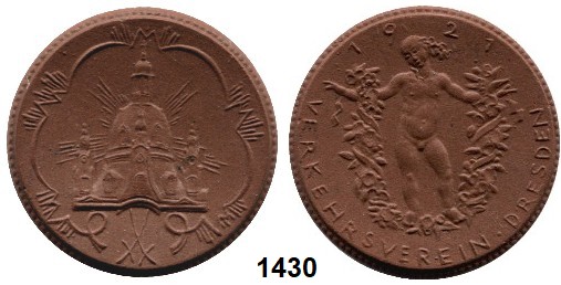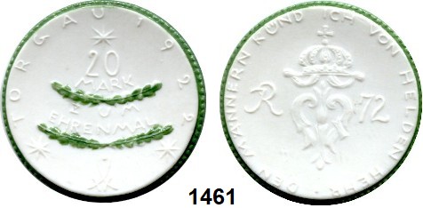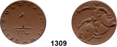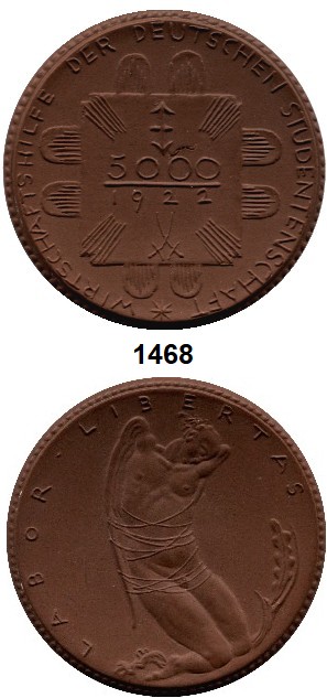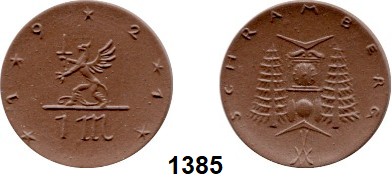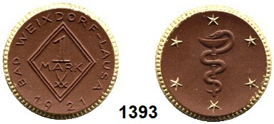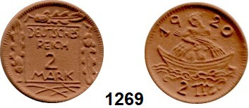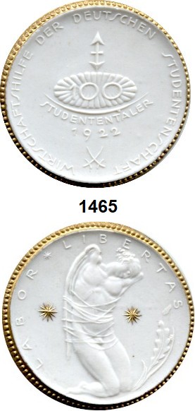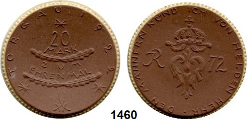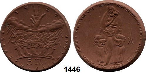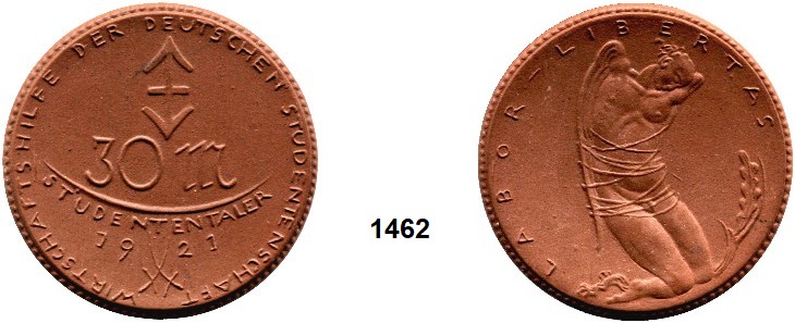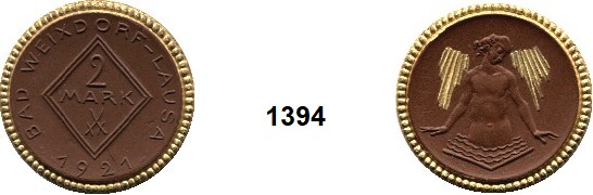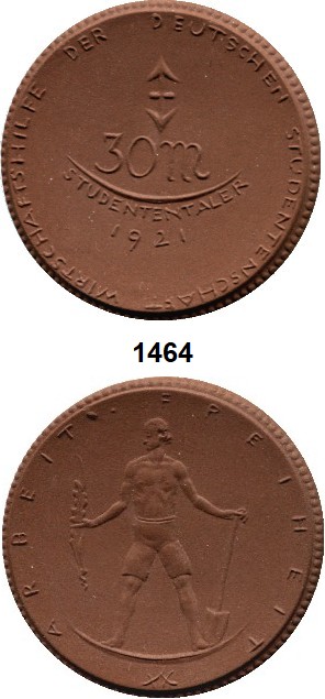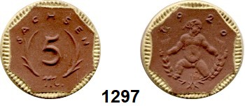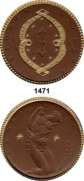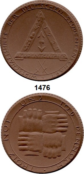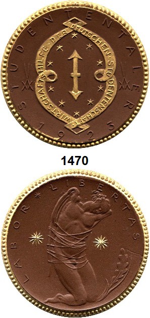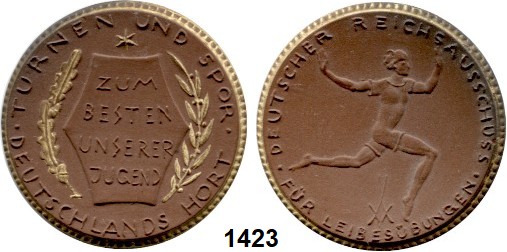 Ohne Wertangabe o.J. (1921) braun, Rand, Stern und Zweige gold.. Gipsform. Deutscher Reichsausschuss für Leibesübungen. Fehlprägung „SPOR“ statt „SPORT“.