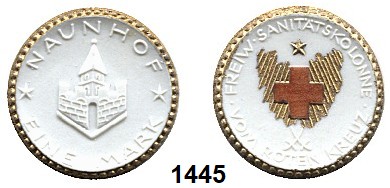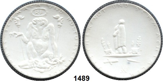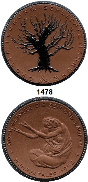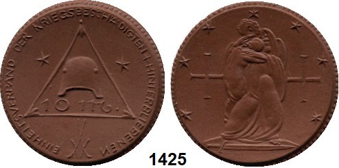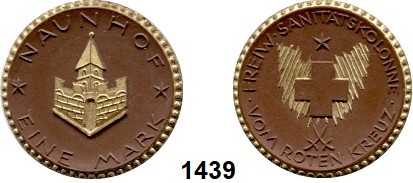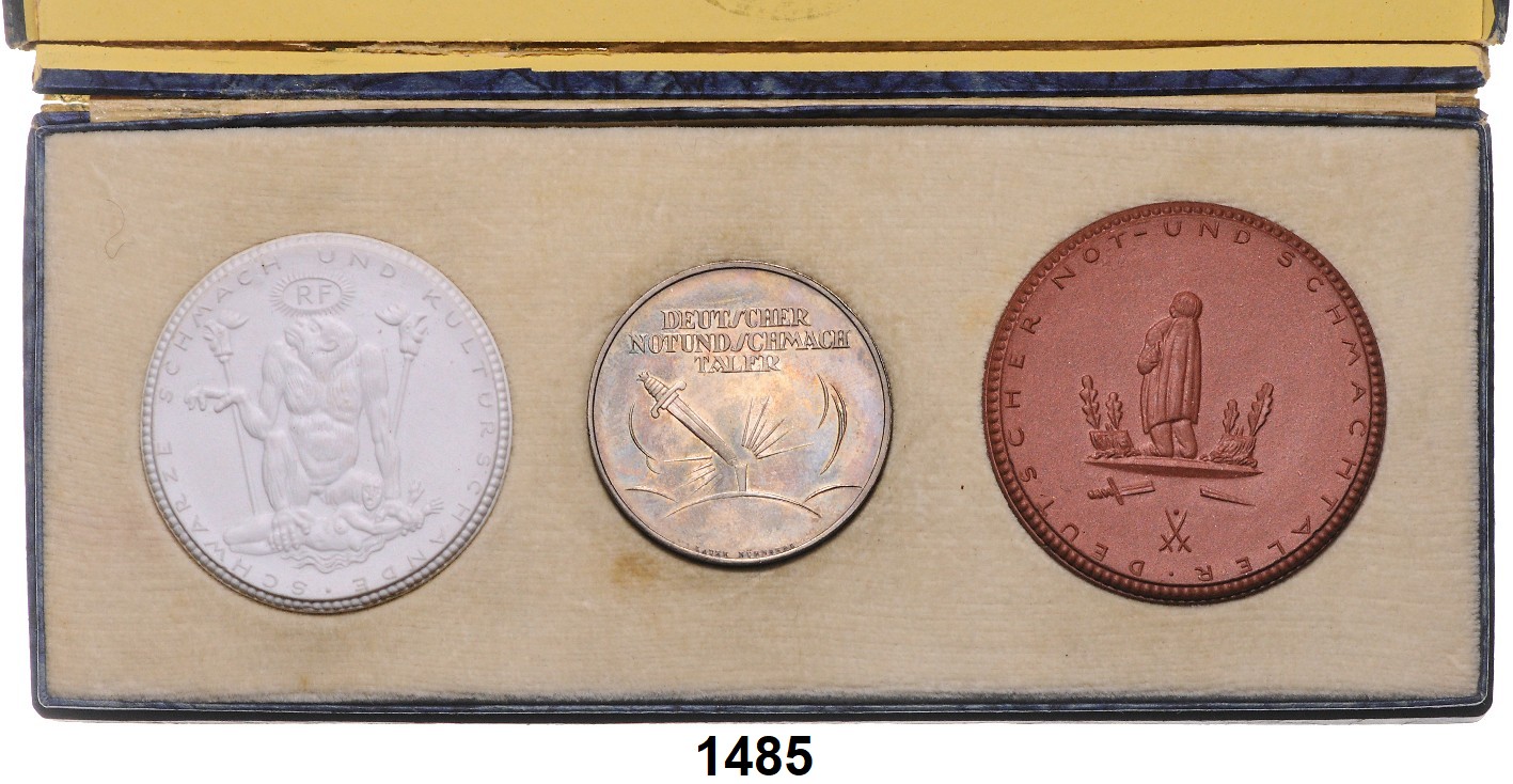 Deutscher Not- und Schmachtaler o.J.(1922) braun und weiß. Im Originaletui mit versilberter Medaille „Schwarze Schmach und Kulturschande am Rhein“. LOT. 3 Stück. Etui mit Beschriftung : „….Ruhr Flüchtlings-Hilfer….“