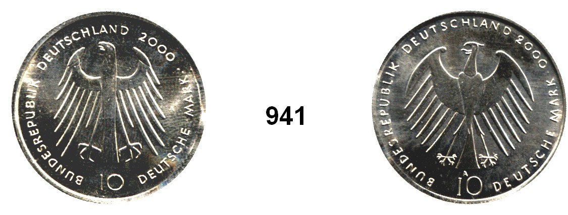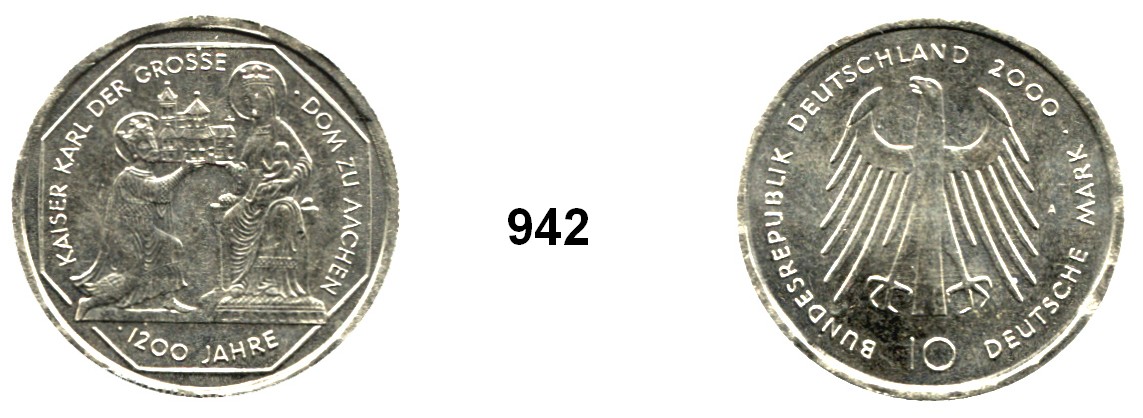 10 Mark 2000 A. Zwitterprägung der Wertseiten. EXPO Hannover und Karl der Große. Jaeger 474/475. Kupfer-Nickel Schrötling. Rand geriffelt. 32,9 mm. 11,43 Gramm.