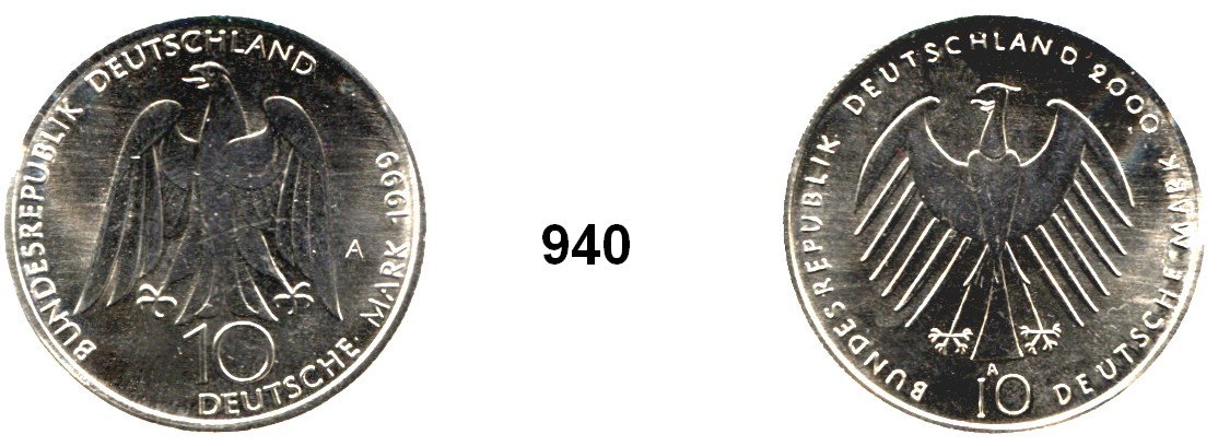 10 Mark 1999/2000 A. Zwitterprägung der Wertseiten. Goethe/Weimar und EXPO Hannover. Jaeger 473/474. Kupfer-Nickel Schrötling. Rand geriffelt. 32,9 mm. 11,43 Gramm.