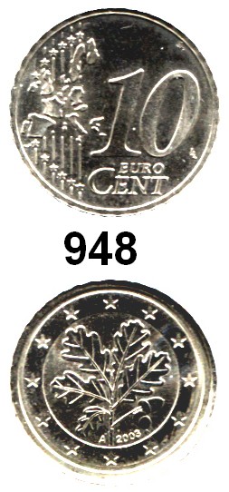10 Cent 2003 A. Jaeger 485. Stempelkopplung Wertseite des 10 Centstückes und Wappenseite des 2 Centstückes. Kupfer-Nickel-Schrötling. Kerbrand. 19,55 mm Ø 3,53 Gramm.