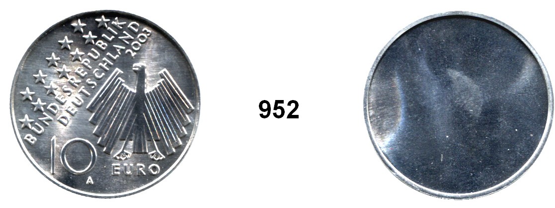 10 Euro 2003 A. Jaeger 500. Einseitiger Aluminiumabschlag der Wertseite. 50. Jahrestag des Volksaufstands in der DDR. 32,,5 mm. 3,6 mm stark. 6,42 Gramm.