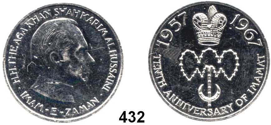 Silbermedaille 1967 (British Royal Mint). 10. Jahrestag der Verleihung des Hoheitstitels „His Highness Prince Aga Khan IV.“ durch die britische Königin. 33 mm. 25,15 g.