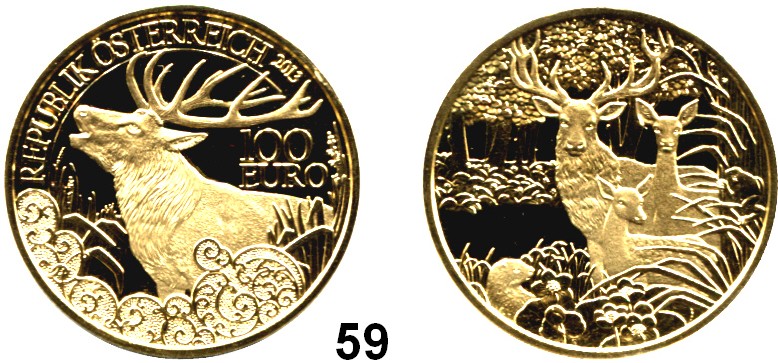 Index: Gold/Platin-Münzen/Medaillen Hirsche Tiere/Tierdarstellungen
