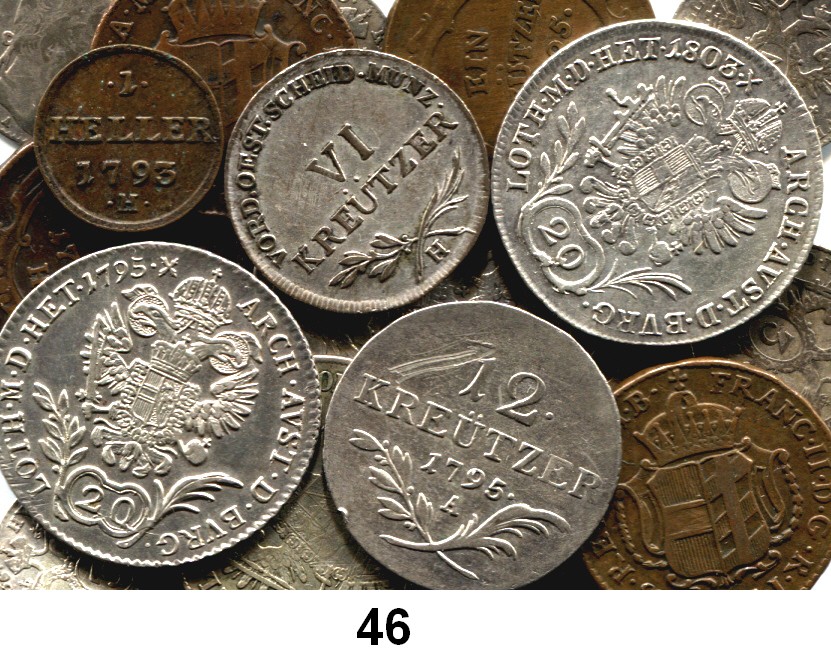 Österreich - Ungarn,Habsburg - Lothringen LOTS       LOTS       LOTS1 Heller 1793 H; 1 Kreuzer 1794 H(2), 1795 H, 1802 H; 3 Kreuzer 1835 A, 1836 A(2), 1838 A, C, 1840 A; 6 Kreuzer 1797 H; 10 Kreuzer 1796 E; 12 Kreuzer 1795 A; 20 Kreuzer 1795 B, 1803 B und 1837 B.  LOT 17 Stück.1 Heller 1793 H; 1 Kreuzer 1794 H(2), 1795 H, 1802 H; 3 Kreuzer 1835 A, 1836 A(2), 1838 A, C, 1840 A; 6 Kreuzer 1797 H; 10 Kreuzer 1796 E; 12 Kreuzer 1795 A; 20 Kreuzer 1795 B, 1803 B und 1837 B. LOT 17 Stück.
