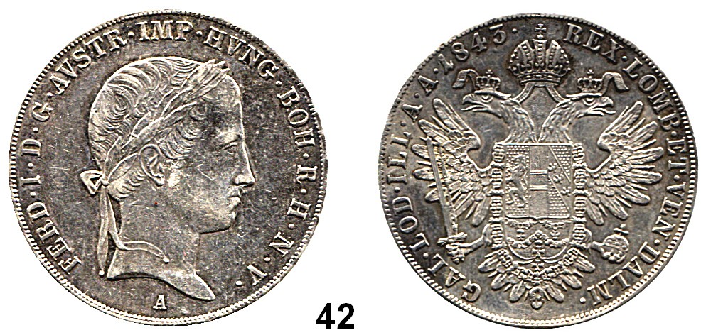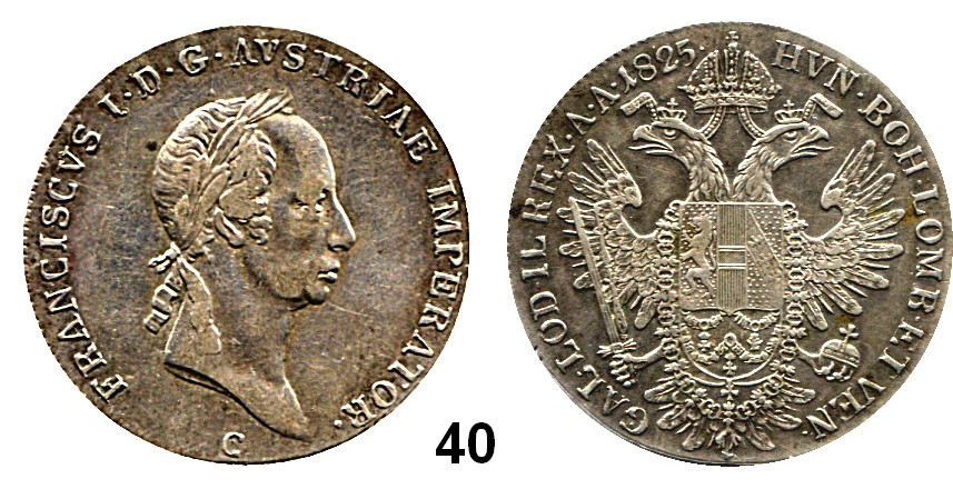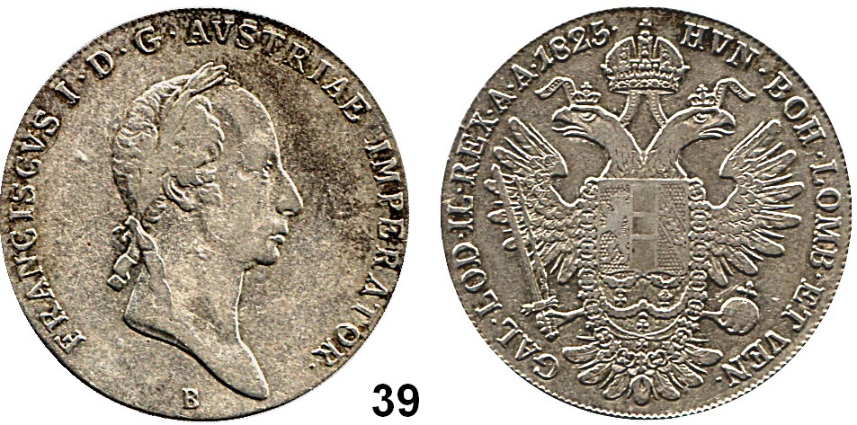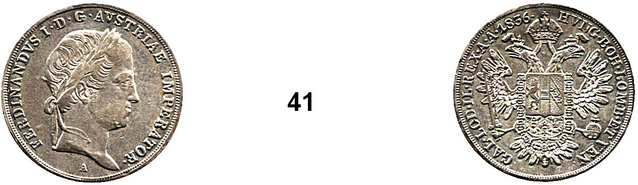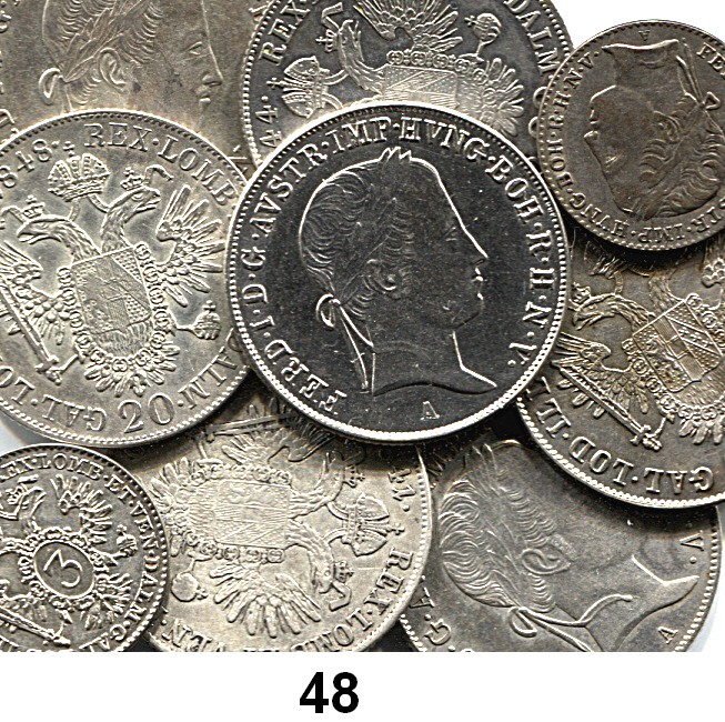 1 Kreuzer 1701 CB; 3 Kreuzer 1668; 6 Kreuzer 1678; 1/4 Kronentaler 1796 C; Kronentaler 1775, Brüssel; 15 Kreuzer 1776 für Galizien und Gulden 1861 A(vz-stgl). LOT 7 Stück.