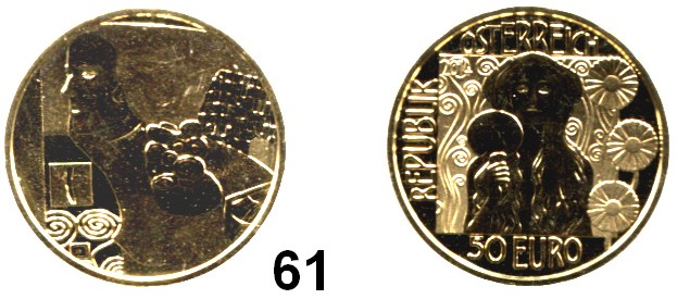 Österreich - Ungarn,Österreich 2. Republik ab 194550 Euro 2014.  (10 g fein).  150. Geburtstag von Klimt 50 Euro 2014. (10 g fein). 150. Geburtstag von Klimt „Nuda Veritas“ (Nackte Wahrheit). Schön 413. KM 3229. GOLD