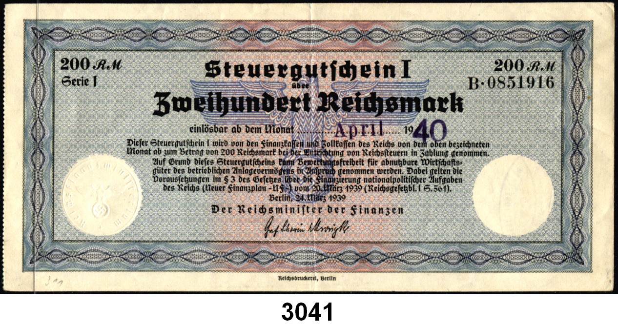 Papiergeld R E I C H S B A N K N O T E N