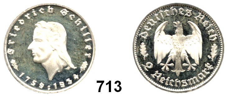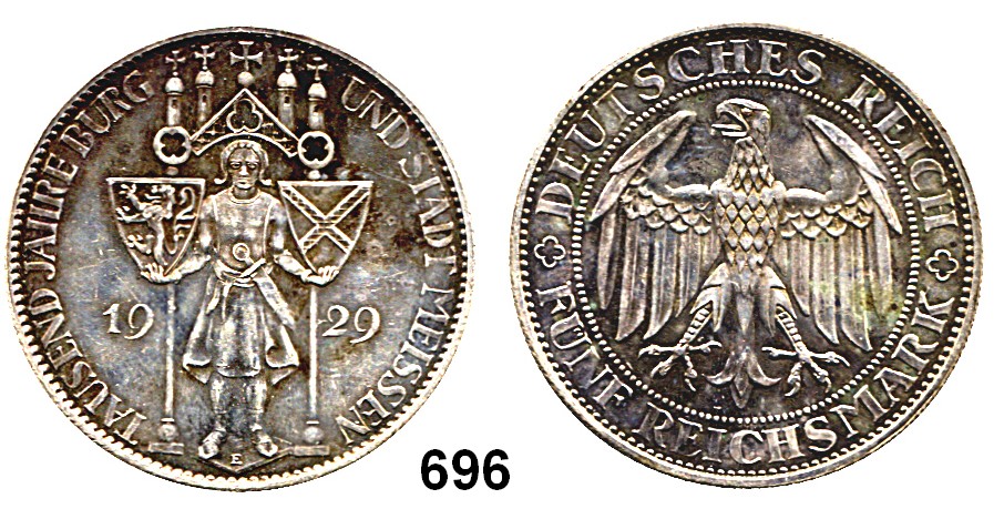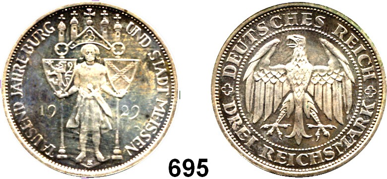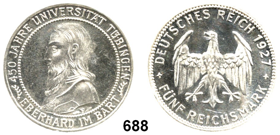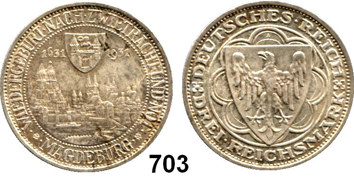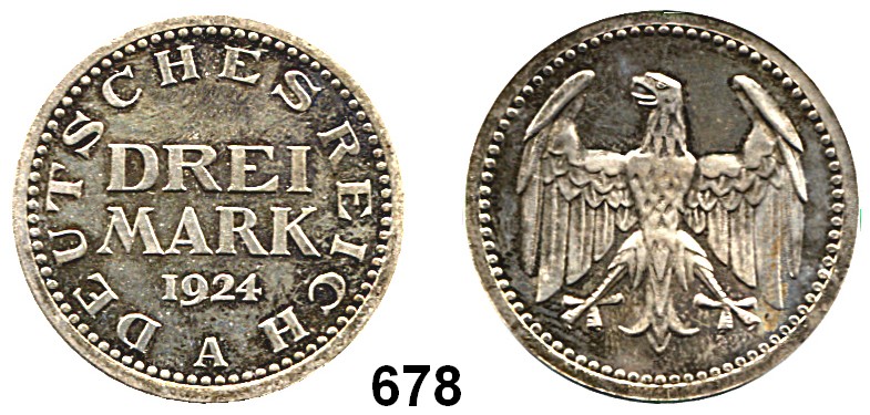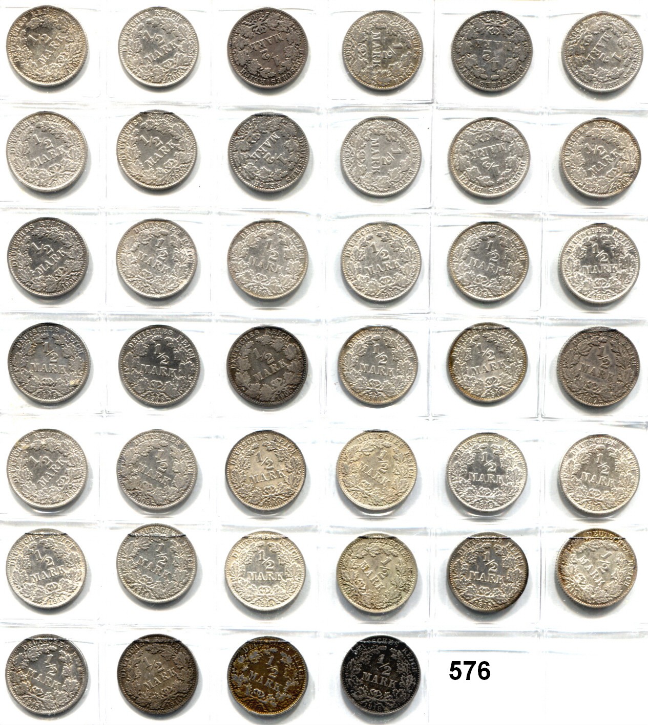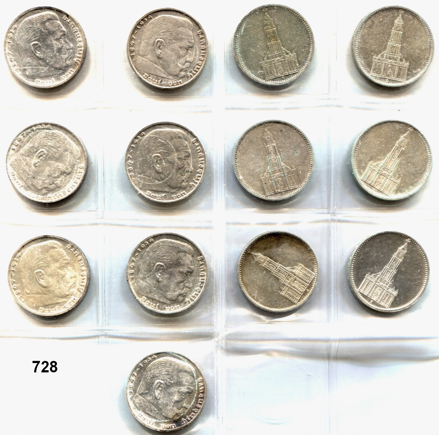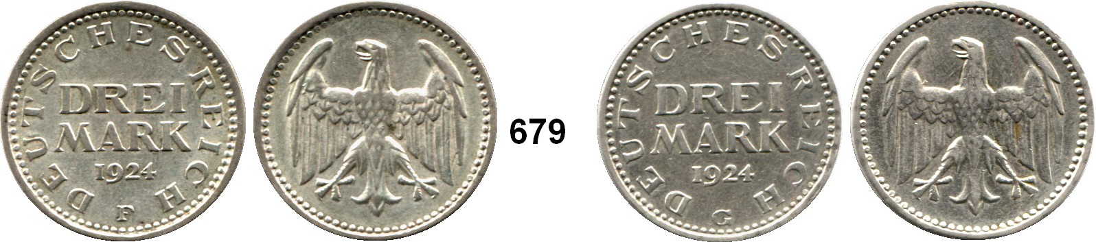 Album mit 41 Münzen 1917 bis 1932. Darunter 500 Mark 1923 J (aus Brandschutt); 1 Mark 1924 A(vz-prfr); DREI MARK 1924 A; 2 Reichsmark 1926 A, D; 1927 A; 1931 D, J; 3 Reichsmark 1925 A „Rheinland“; 1929 A „Lessing“; 1929 E „Meißen“; 1929 „Schwurhand“; 1930 A „Zeppelin“ und 5 Reichsmark 1932 A „Eichbaum“.