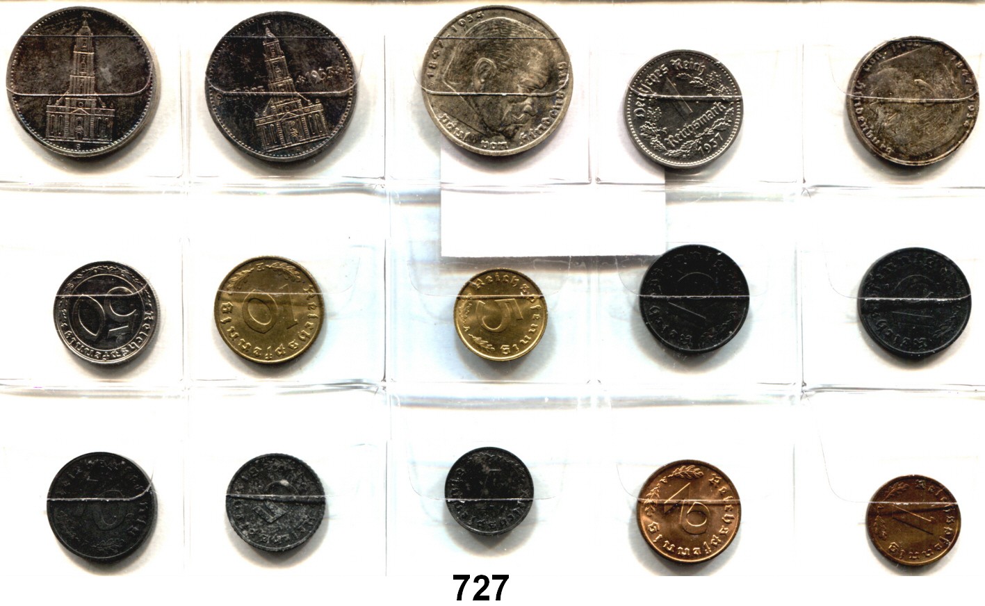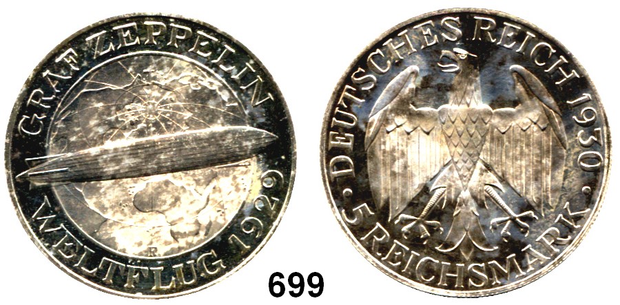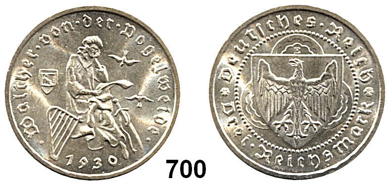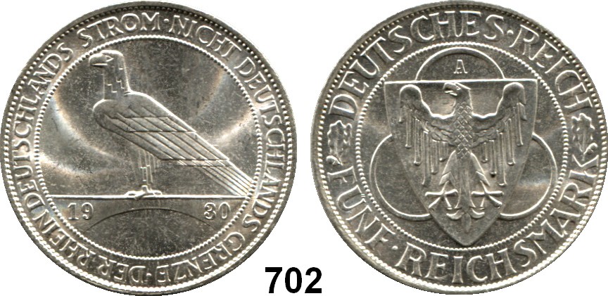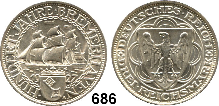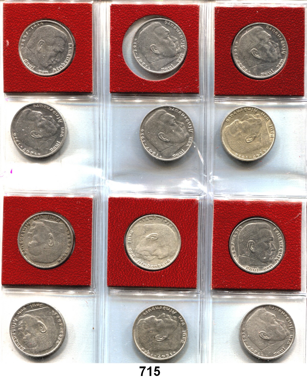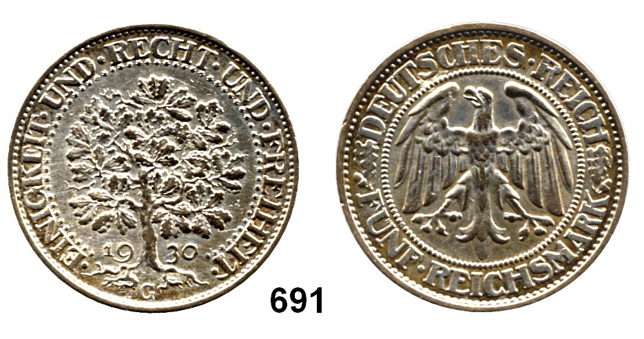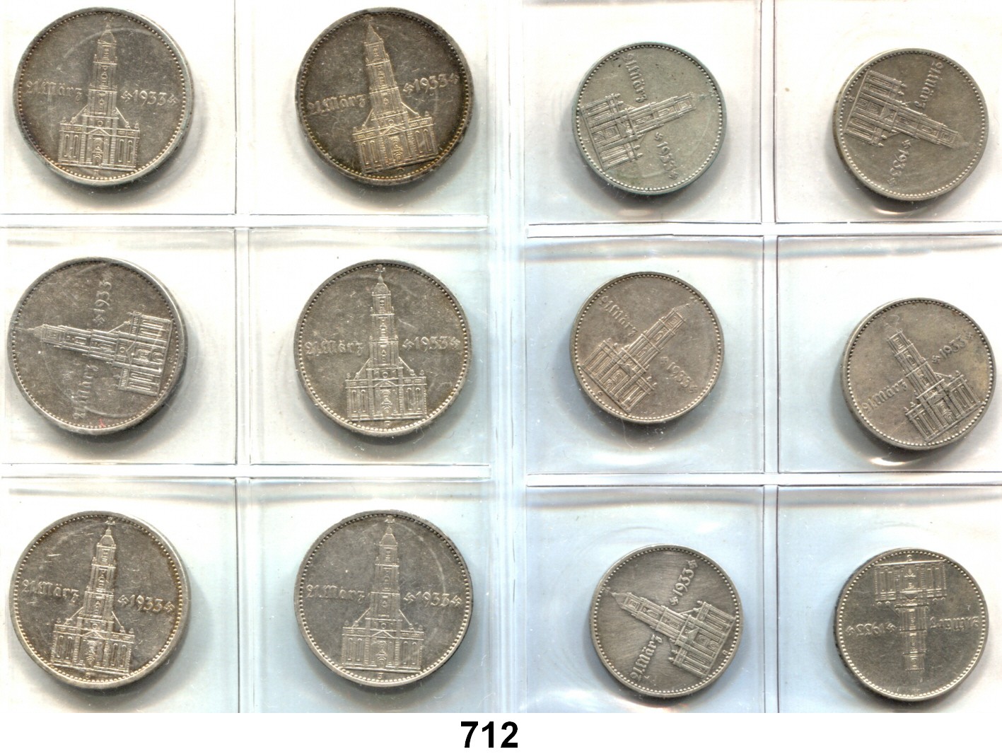 Album mit 41 Münzen 1917 bis 1932. Darunter 500 Mark 1923 J (aus Brandschutt); 1 Mark 1924 A(vz-prfr); DREI MARK 1924 A; 2 Reichsmark 1926 A, D; 1927 A; 1931 D, J; 3 Reichsmark 1925 A „Rheinland“; 1929 A „Lessing“; 1929 E „Meißen“; 1929 „Schwurhand“; 1930 A „Zeppelin“ und 5 Reichsmark 1932 A „Eichbaum“.