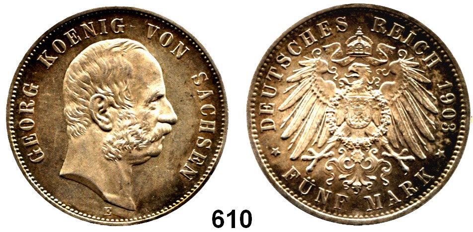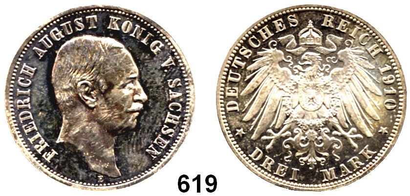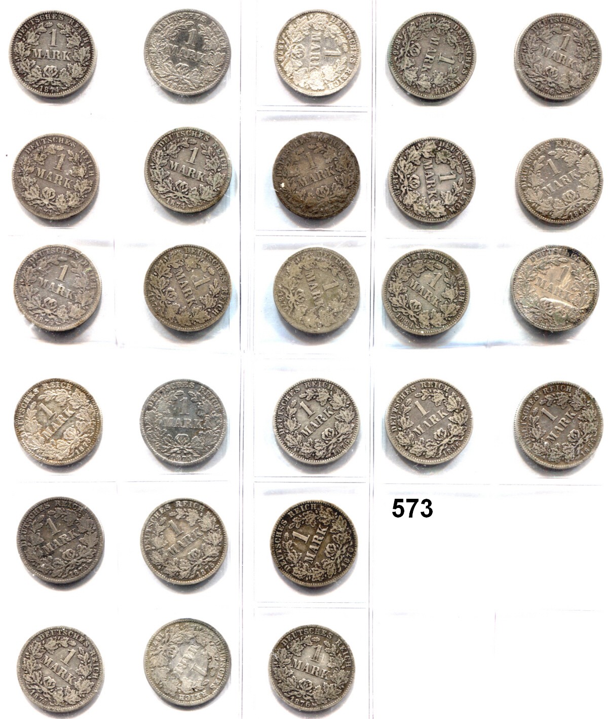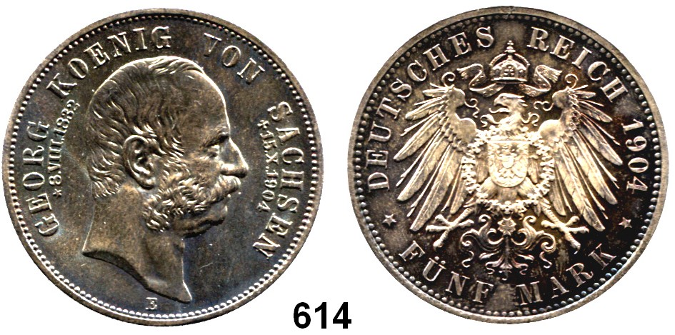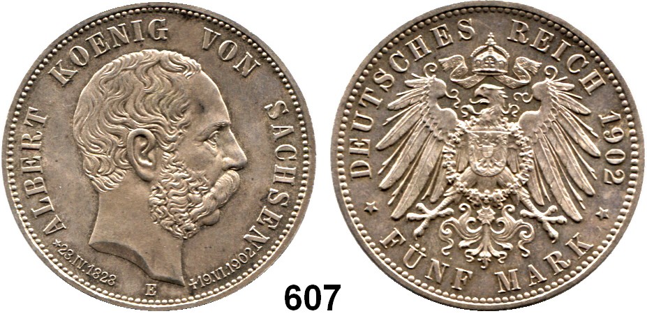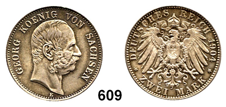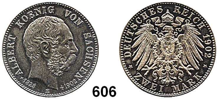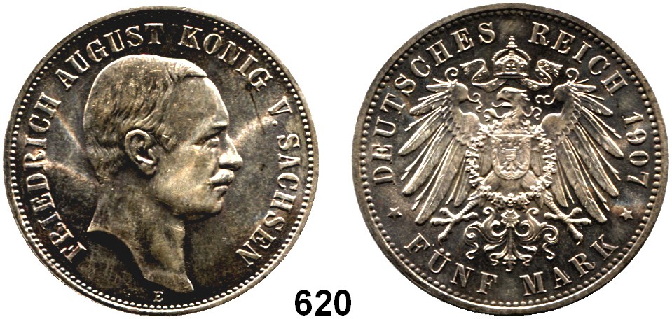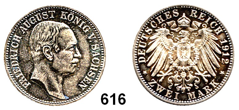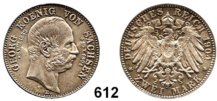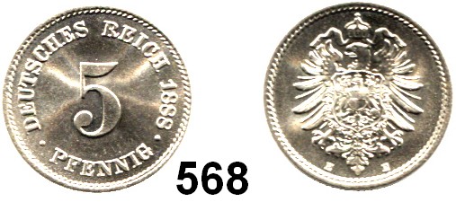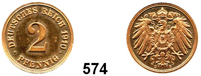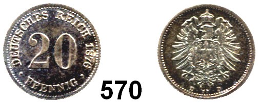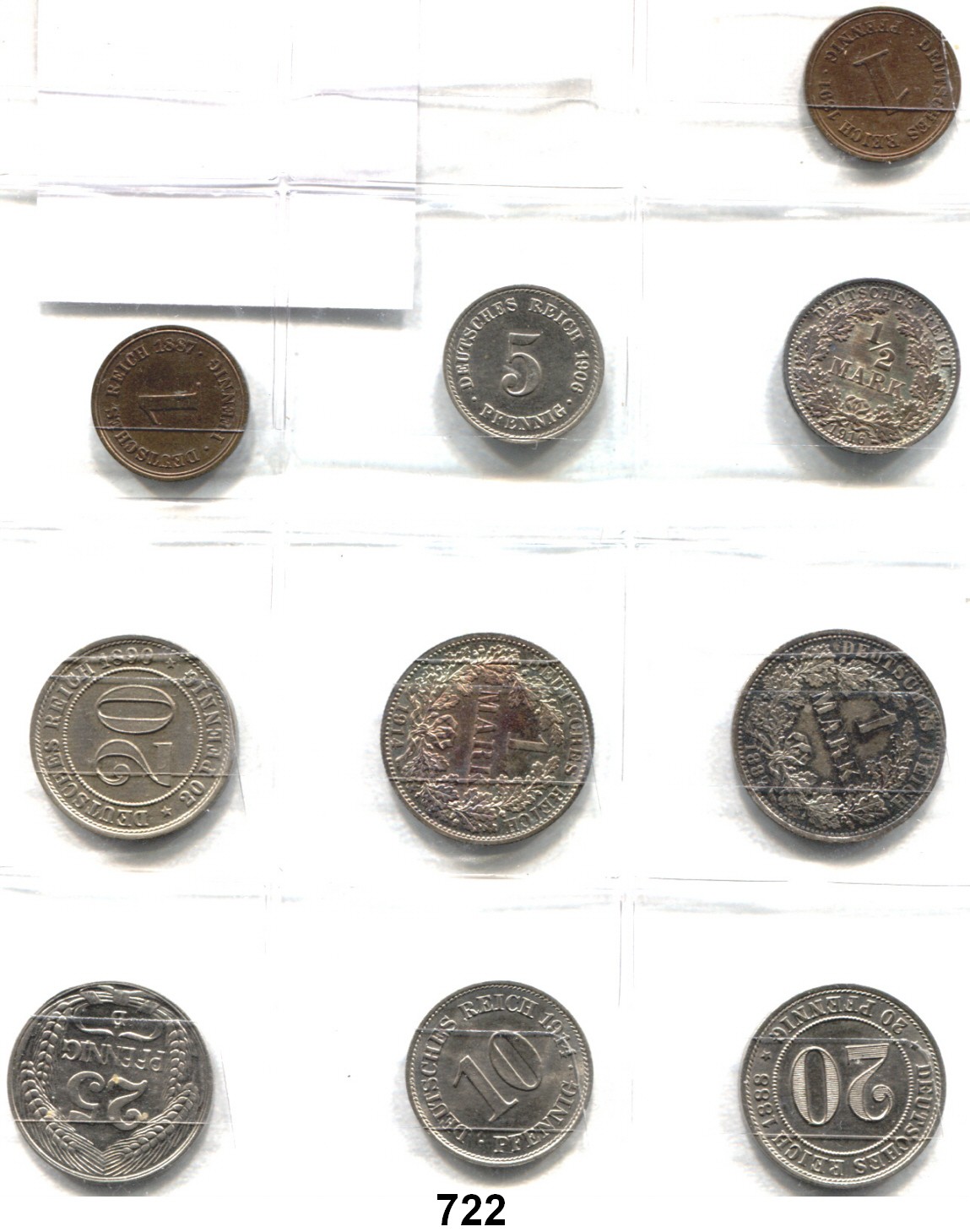 1 Pfennig 1887 A, 1891 A; 5 Pfennig 1906 A; 10 Pfennig 1914 E; 20 Pfennig 1888 A, 1890 A; 25 Pfennig 1912 D; 1/2 Mark 1916 A; 1 Mark 1887 A und 1914 A. LOT 10 Stück.