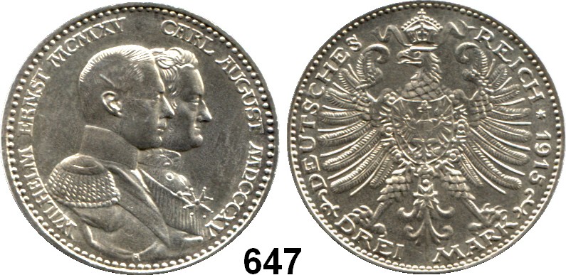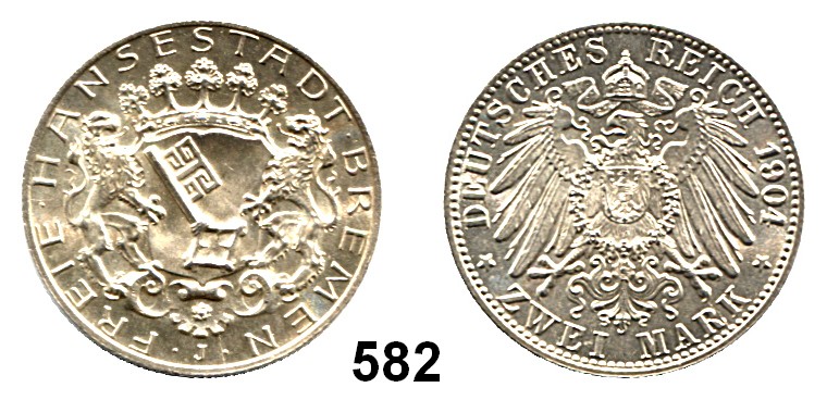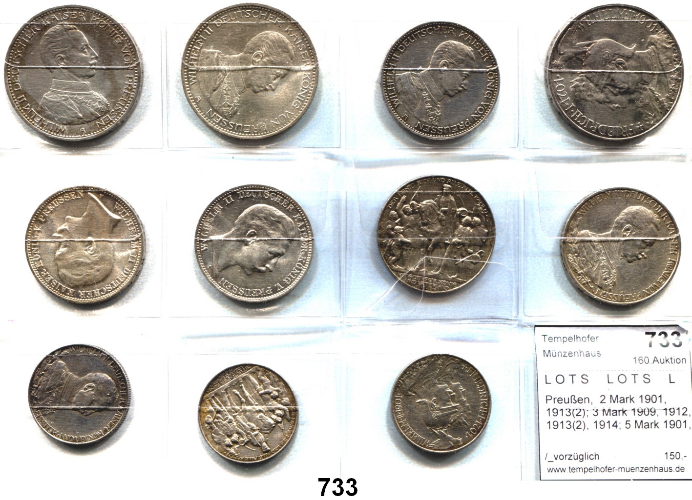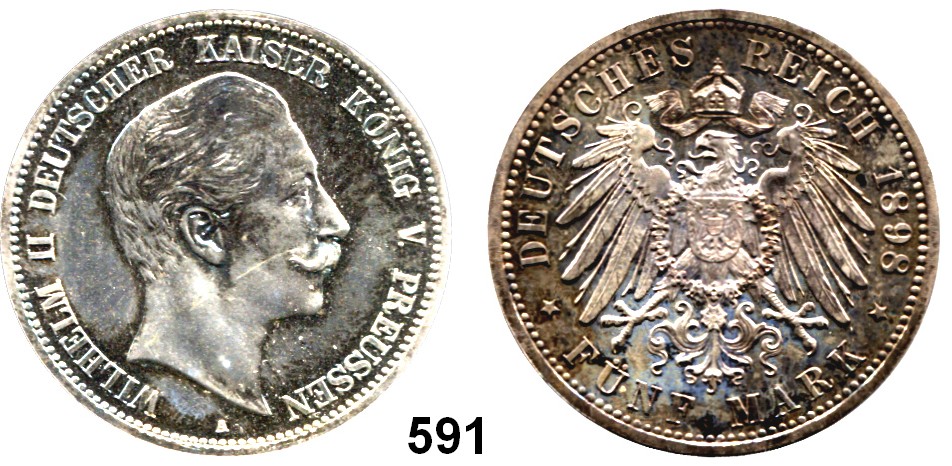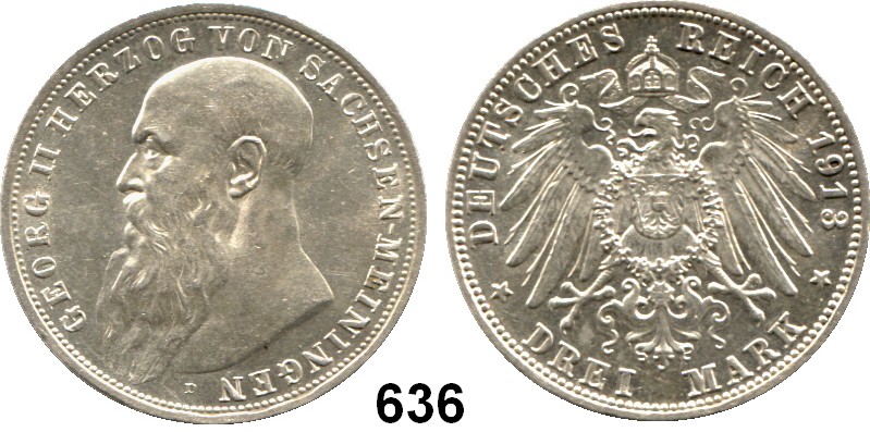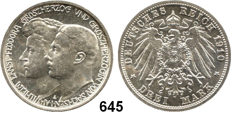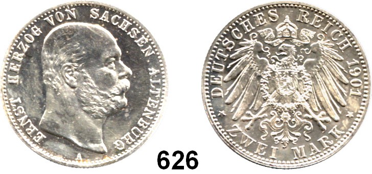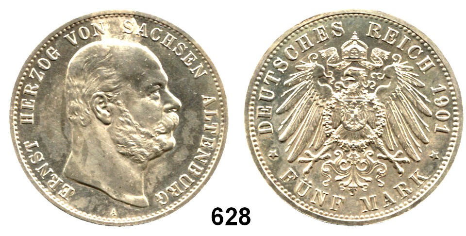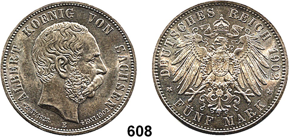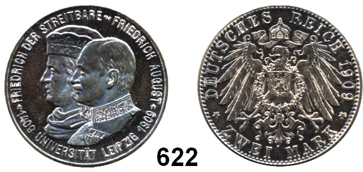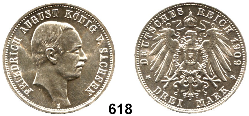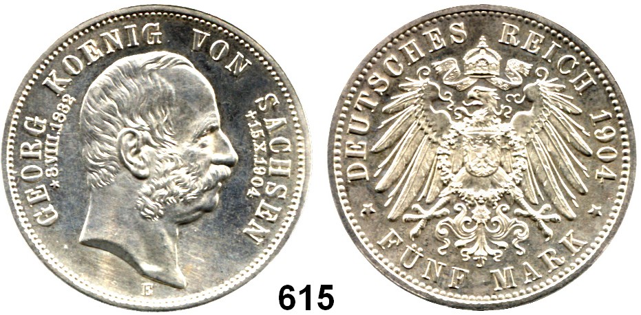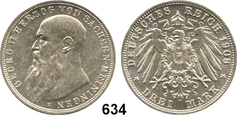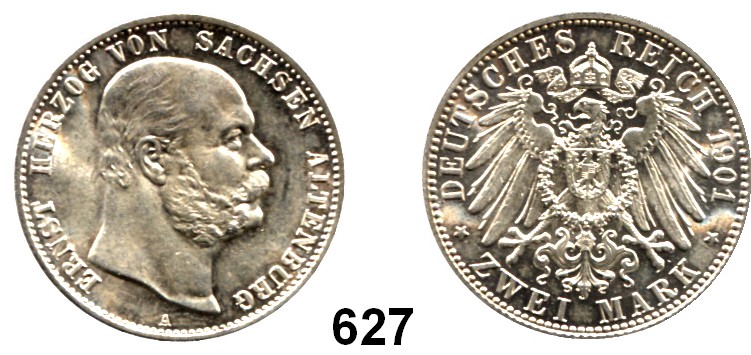 1 Pfennig 1887 A, 1891 A; 5 Pfennig 1906 A; 10 Pfennig 1914 E; 20 Pfennig 1888 A, 1890 A; 25 Pfennig 1912 D; 1/2 Mark 1916 A; 1 Mark 1887 A und 1914 A. LOT 10 Stück.