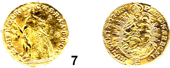 0007.Haus Habsburg Maria Theresia 1740 – 1780 Dukat 1763 K-B, Kremnitz. 3,45 g. Herinek 256. Fb. 180. GOLD Römisch Deutsches Reich Katalogseite Auktion: 160 Losnummer: 0007 Erhaltung: Hksp., geknittert, sehr schön Schätzpreis: 160,00 €