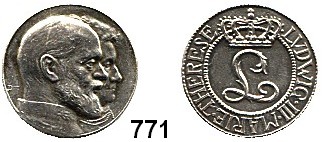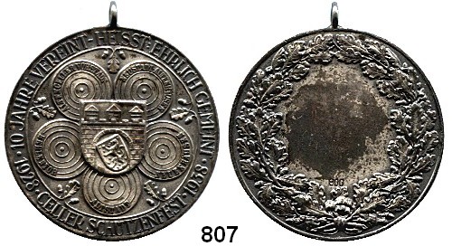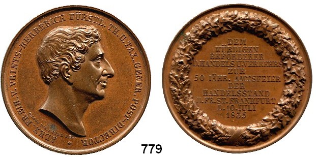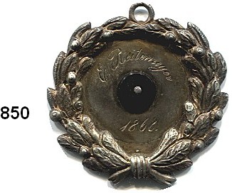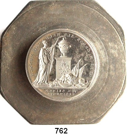 Prägestempel (achteckig) aus Stahl (Matrize) der Rückseite der Medaille von 1809 Auf seine 50jährige Lehrtätigkeit. Zwei Lorbeerkränze über zwei Textzeilen. 44,3/60 mm Ø 54 mm hoch. 1.292 g.