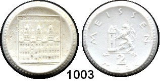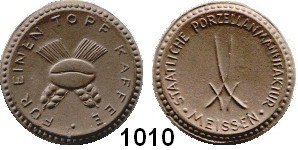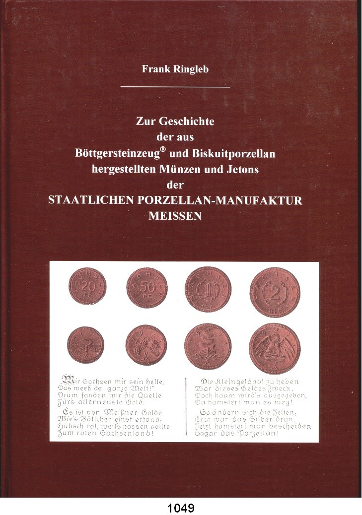 Ringleb, Frank. Zur Geschichte der aus Böttgersteinzeug und Biskuitporzellan hergestellten Münzen und Jetons der Staatlichen Porzellan-Manufaktur Meißen. 1. Auflage 2014. 354 Seiten. Reichhaltig bebildert.