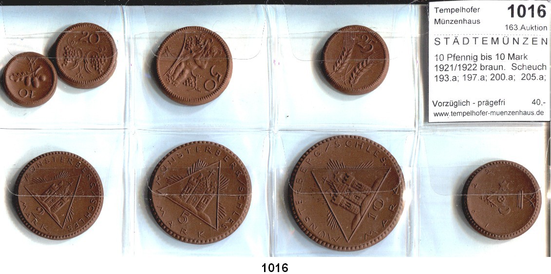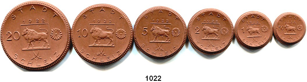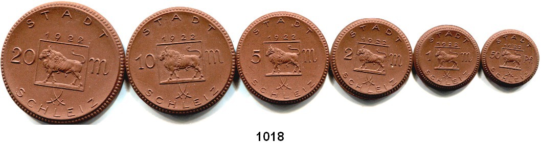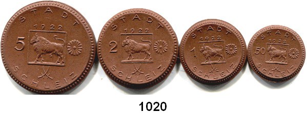 50 ohne Pfennigbezeichnung bis 5 ohne Markbezeichnung 1922 braun. 5.2.1685 Scheuch 223.a; 226.a; 229.a und 232.a. Menzel 22659.17,19,21,23. LOT 4 Stück.