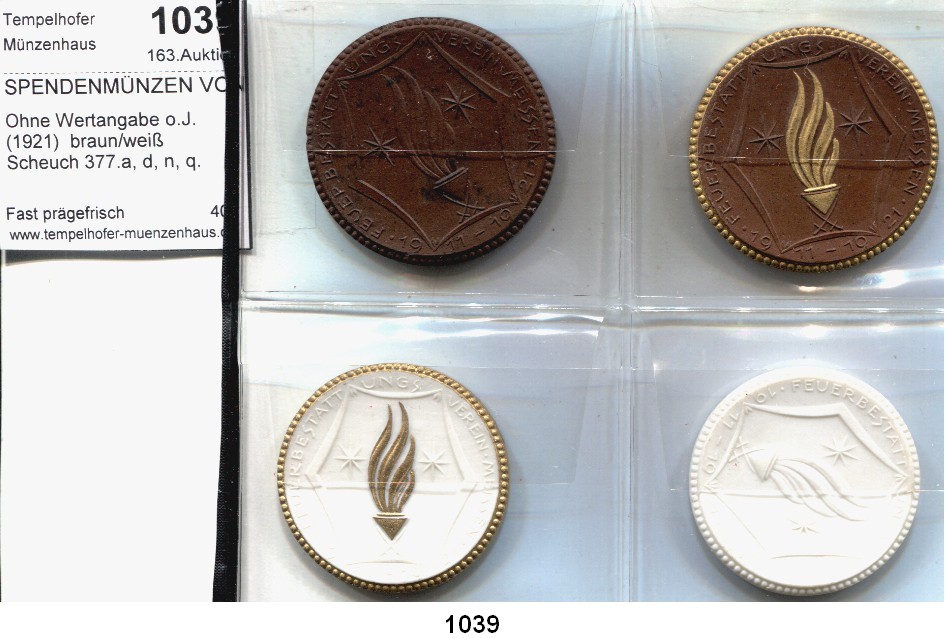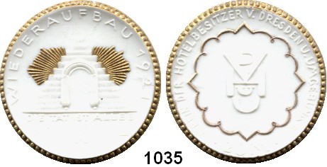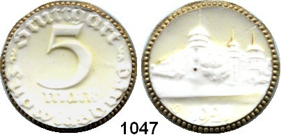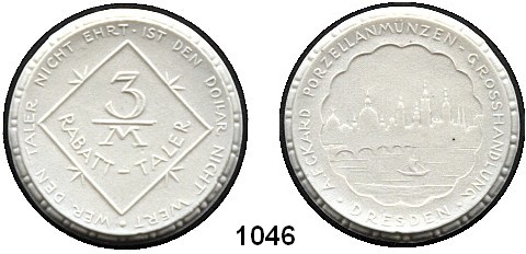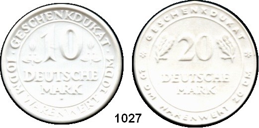 Porzellanhaus Tegelaers. Geschenkdukat 10 Deutsche Mark o.J. weiß. 41 mm. Weigelt 8352. und Geschenkdukat 20 Deutsche Mark O.J. (KPM, Berlin) weiß. 41 mm. LOT 2 Stück.