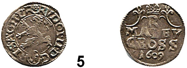 0005. Haus Habsburg Rudolf II. 1576 – 1612 Maleygroschen 1609, Kuttenberg. 1,10 g. Dietiker 271. Römisch Deutsches Reich Katalogseite Auktion: 164 Losnummer: 0005 Erhaltung: Sehr schön – vorzüglich Schätzpreis: 60,00 € Zuschlag: 85,00 €
