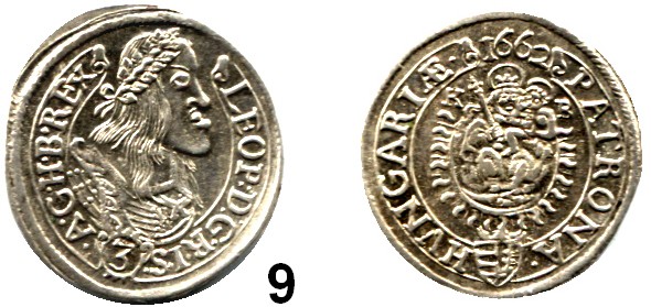 0009. Haus Habsburg Leopold I. 1657 – 1705 3 Kreuzer 1662 KB, Kremnitz. 1,61 g. Herinek 1577. Römisch Deutsches Reich Katalogseite Auktion: 164 Losnummer: 0009 Erhaltung: Sehr schön – vorzüglich Schätzpreis: 30,00 € Zuschlag: 60,00 €
