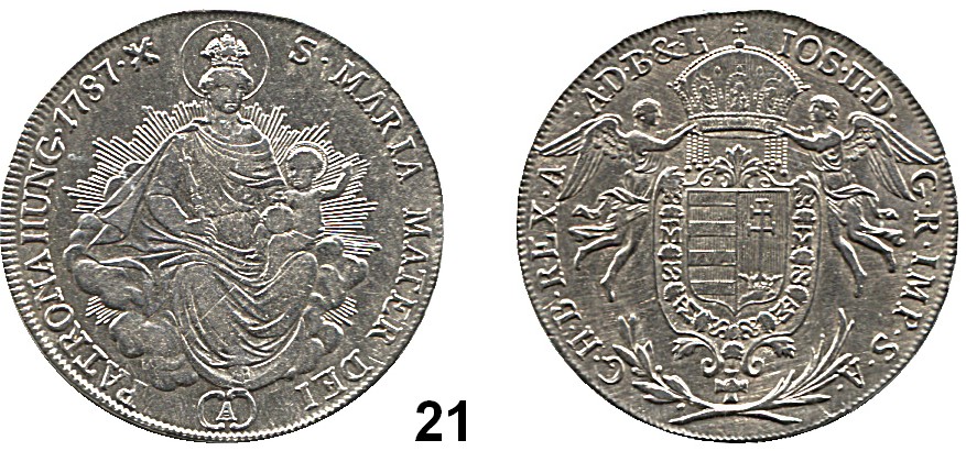 0021. Haus Habsburg Josef II. 1765 – 1790 1/2 Madonnentaler 1787 A, Wien. 13,92 g. Herinek 163. Jl. 26. Römisch Deutsches Reich Katalogseite Auktion: 164 Losnummer: 0021 Erhaltung: Sehr schön + Schätzpreis: 50,00 € Zuschlag: 70,00 €